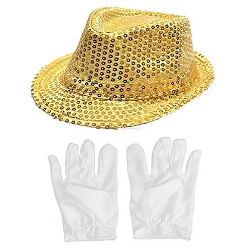 Altın Renk Payetli Çocuk Şapkası Ve Beyaz Renk Çocuk Eldiveni