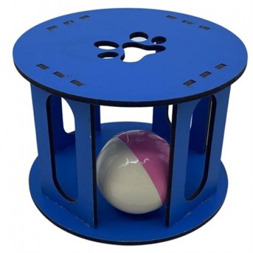 Ahşap Kafes Renkli Toplu Kedi Patisi Desenli Sesli Kedi Oyuncağı