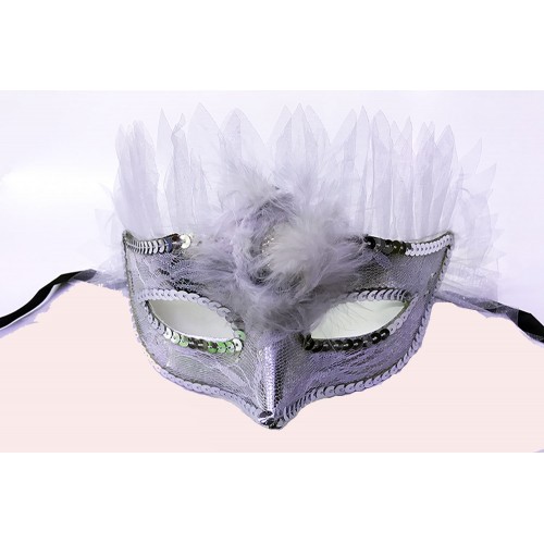 Beyaz Renk Beyaz Tüllü Pul İşlemeli Yılbaşı Parti Maskesi