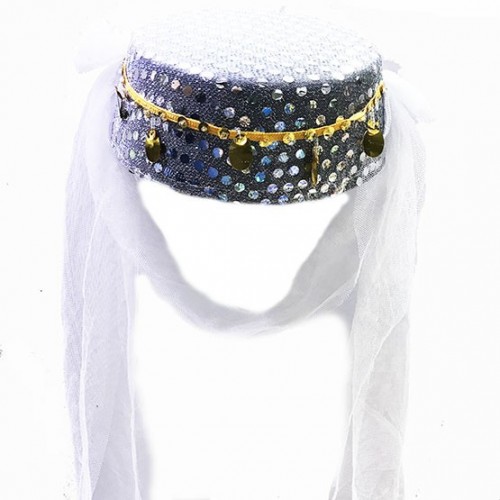 Beyaz Duvaklı Altın Pul İşlemeli Kına Fesi Kına Şapkası Oryantal Şapkası