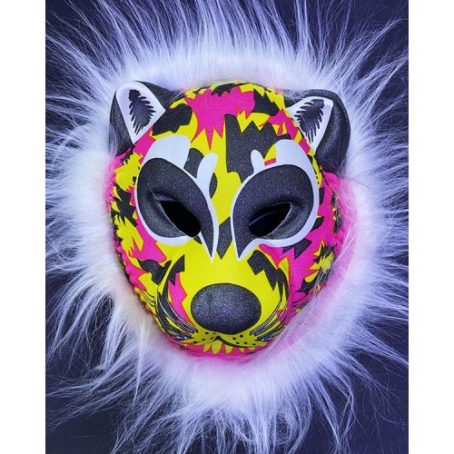 Beyaz Peluşlu Rengarenk Kırılmaz Yumuşak Leopar Tiger Köpek Maskesi 22x19 Cm