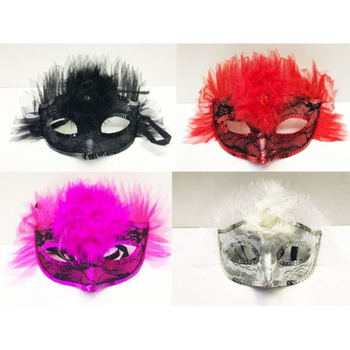 Duvaklı Pullu Yılbaşı Tüylü Parti Maskesi Karışık Renk 12 Adet
