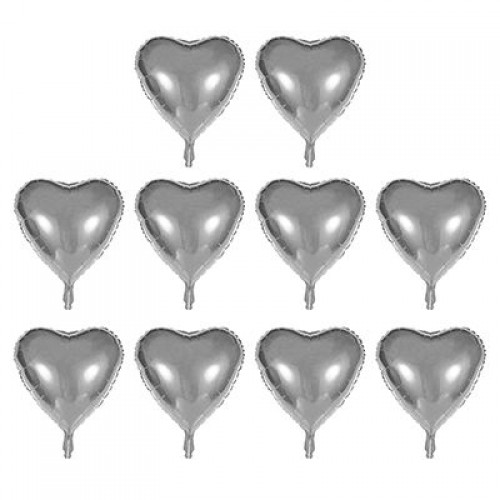 Kalp Şekilli Gümüş Renk Toptan Folyo Balon 45 Cm 10 Adet