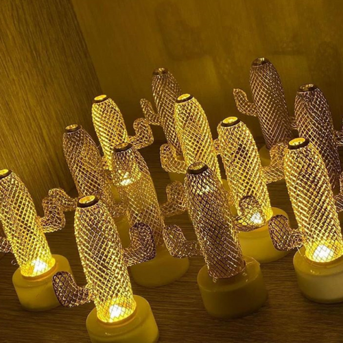 Kaktüs Model Portatif Pilli Mini Gece Ve Masa Dekor Lambası (12 Adet)