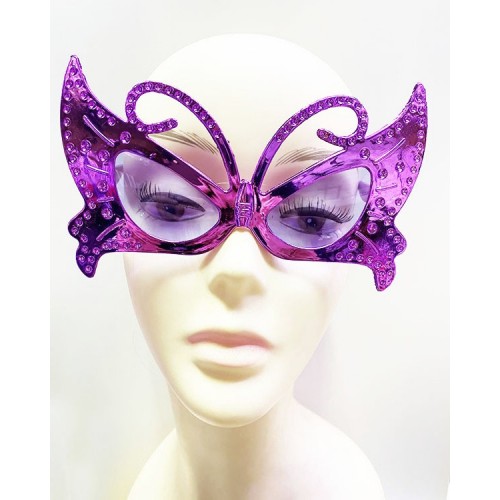 Metalize Kelebek Şekilli Parlak Parti Gözlüğü Mor Renk 15x9 Cm