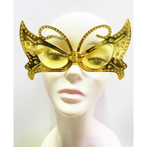 Metalize Kelebek Şekilli Parlak Parti Gözlüğü Altın Renk 15x9 Cm