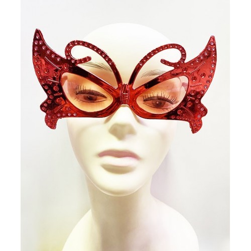 Metalize Kelebek Şekilli Parlak Parti Gözlüğü Kırmızı Renk 15x9 Cm