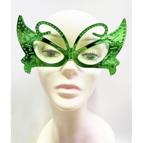 Metalize Kelebek Şekilli Parlak Parti Gözlüğü Yeşil Renk 15x9 Cm