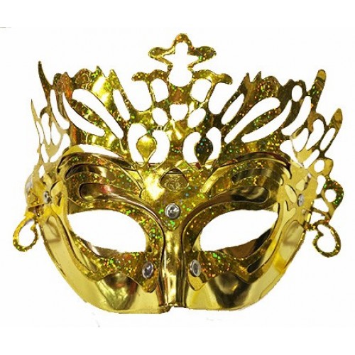 Metalize Ekstra Parlak Hologramlı Parti Maskesi Altın Renk 23x14 Cm