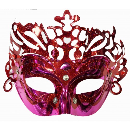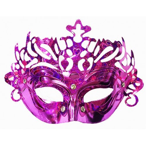 Metalize Ekstra Parlak Hologramlı Parti Maskesi Fuşya Renk 23x14 Cm