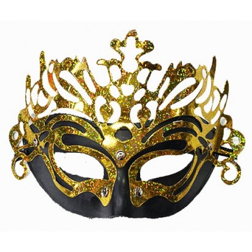Metalize Ekstra Parlak Hologramlı Parti Maskesi Siyah-altın Renk 23x14 Cm
