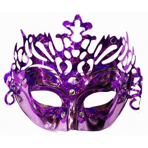 Metalize Ekstra Parlak Hologramlı Parti Maskesi Mor Renk 23x14 Cm