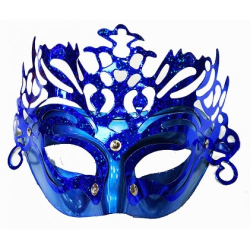Metalize Ekstra Parlak Hologramlı Parti Maskesi Mavi Renk 23x14 Cm