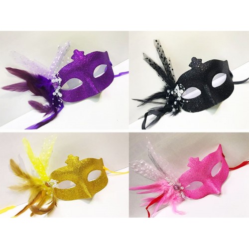 Simli Yılbaşı Venedik Tüylü Parti Maskesi Karışık Renk 12 Adet