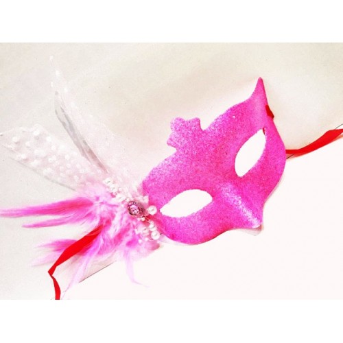 Sim İşlemeli Yandan Tüylü Yılbaşı Maskesi Pembe Renk