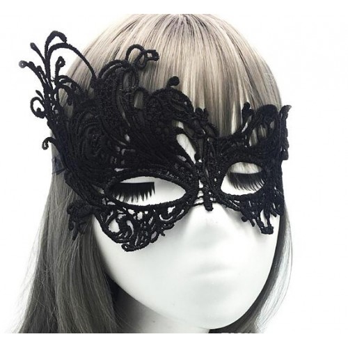 Siyah Renk Dantel İşlemeli Örgü İşlemeli Parti Maskesi Model 5