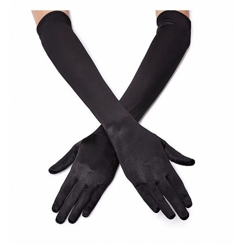 Siyah Renk Dirseğe Kadar Uzun Kumaş Eldiven