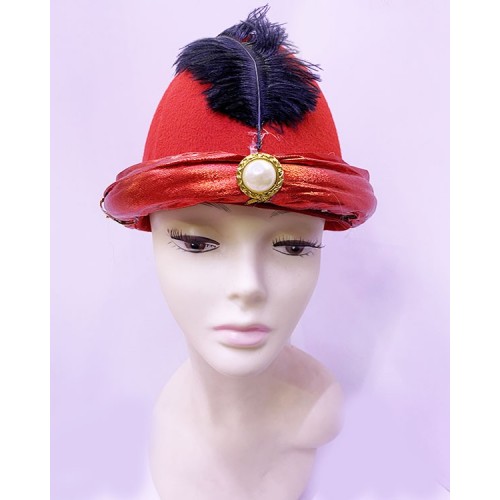 Siyah Tüylü Kırmızı Kumaş Kaplama Şehzade Sultan Şapkası Padişah Kavuğu