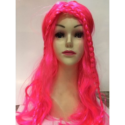 Örgülü Takma Peruk Uzun Saç Pembe...
